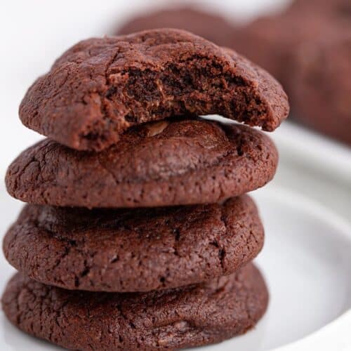 These tender Chocolate Pudding Cookies are soft, fudgy, and packed full of milk chocolate chips. They have rich bakery-style texture thanks to the instant chocolate pudding mix. They’re thick, chewy, and will stay soft for days!