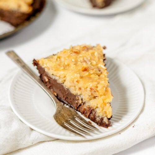 German Chocolate – German chocolate is slightly sweeter and milder than dark chocolate giving this pie it’s signature German chocolate flavor.