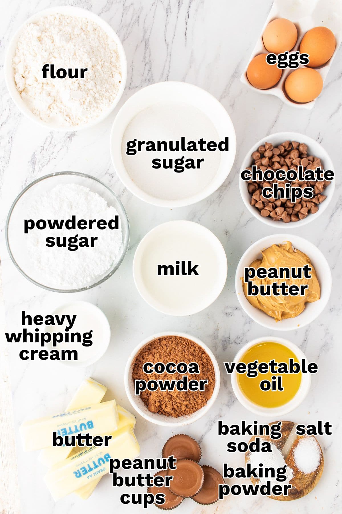 Peanut Butter Cups: Reese’s peanut butter cups are used to decorate the top of the cake. You are welcome to skip or add even more peanut butter cups if you want.